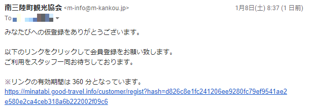 ・It may have been sorted into spam. Please search your entire mailbox for the keyword "Minatabi."
